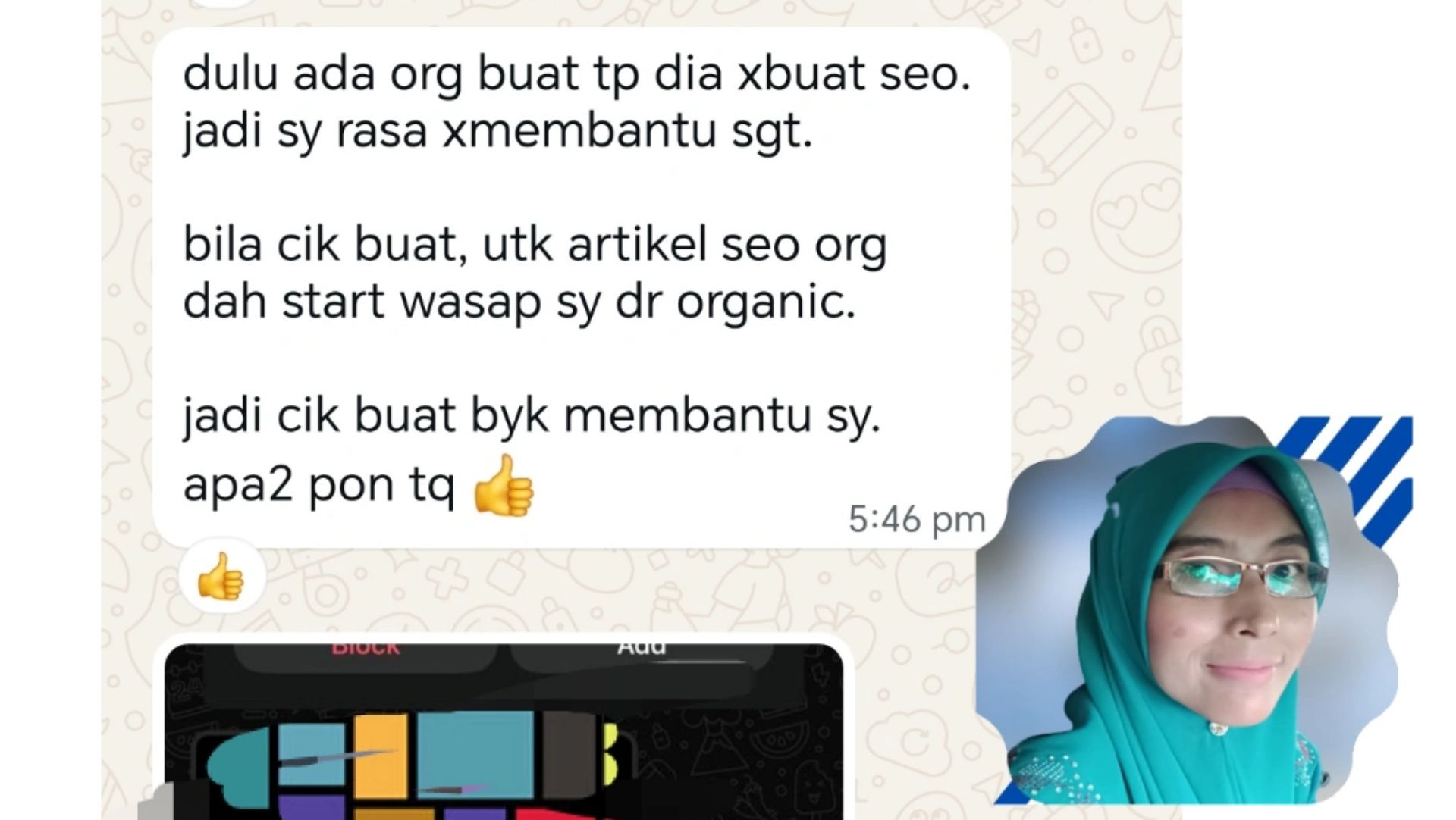 Saya menulis content di website dengan format artikel SEO. Artikel yang bukan sekadar keyword, tapi ada strategi. Mahir menggunakan Yoast, AIO SEO, dan Rank Math. Saya menulis artikel SEO sejak 2020. Saya menulis, dan juga coaching untuk Kelas Basic SEO.