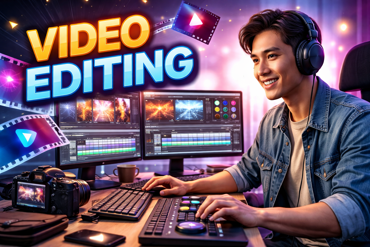 Video editing for short and long content with clean cuts, smooth flow, simple transitions, and basic audio adjustment.